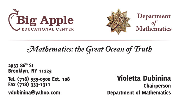 Business cards for Big Apple Educational Center.