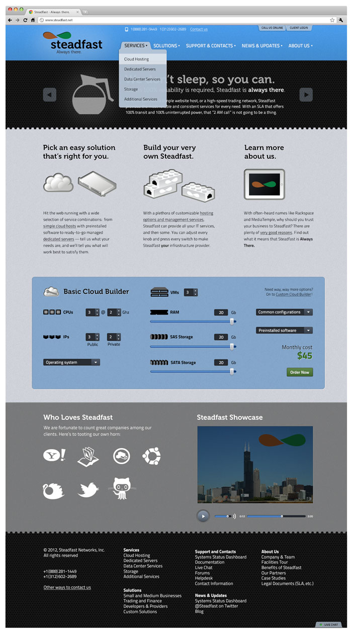 Website for Steadfast Networks, a hosting provider.