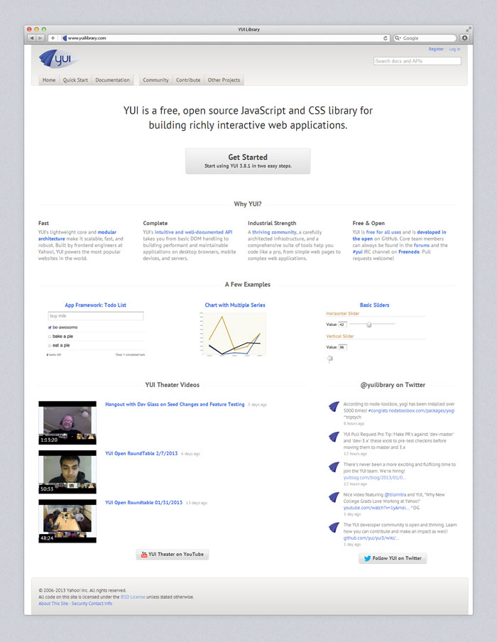 Website for Yahoo!'s YUI frontend Library.